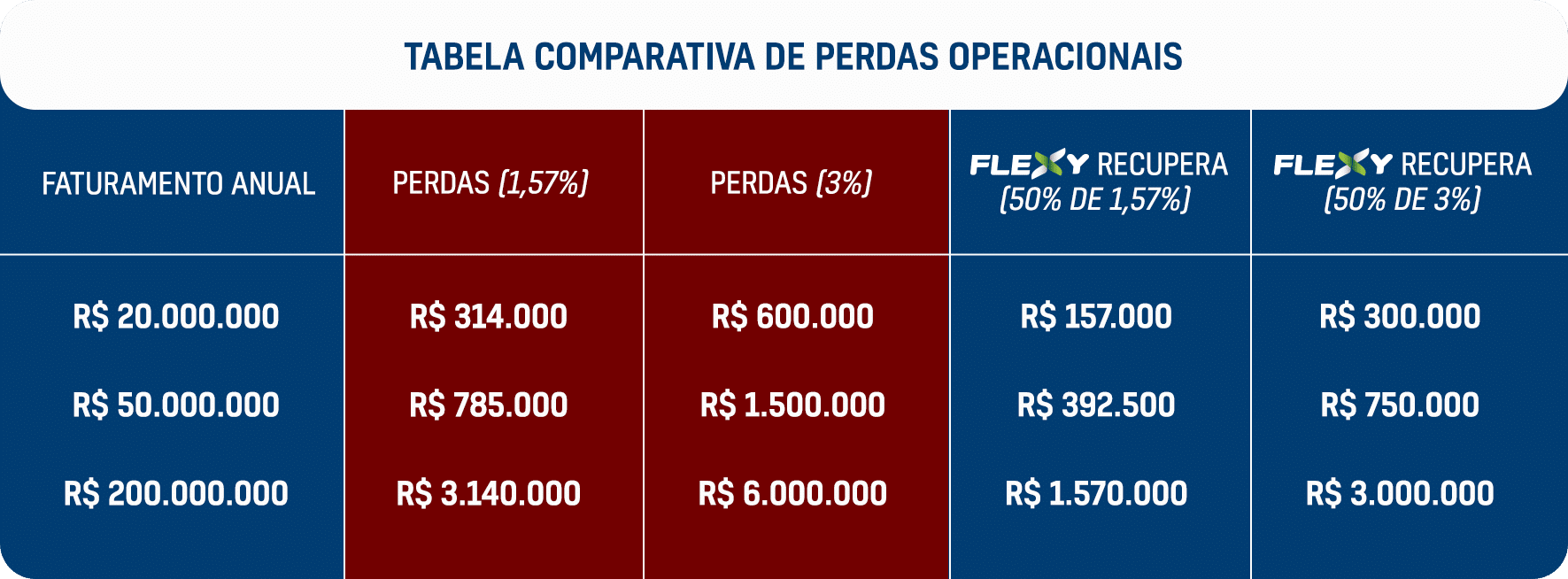Por exemplo: em um faturamento de R$ 200 milhões, recuperar 50% das perdas significa colocar de volta R$ 1,57 milhão a R$ 3 milhões no caixa da empresa — todos os anos, de forma recorrente.